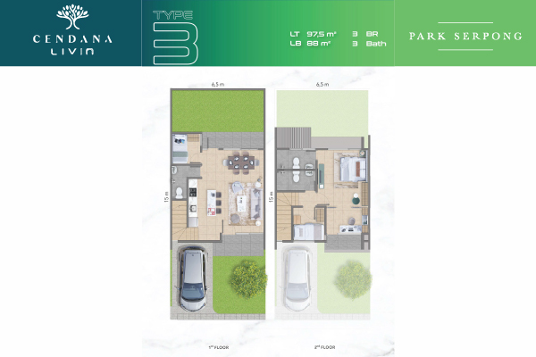 LT 97,5 m² LB 88 m² 3 Kamar Tidur 3 Kamar Mandi 1 Tempat Parkir