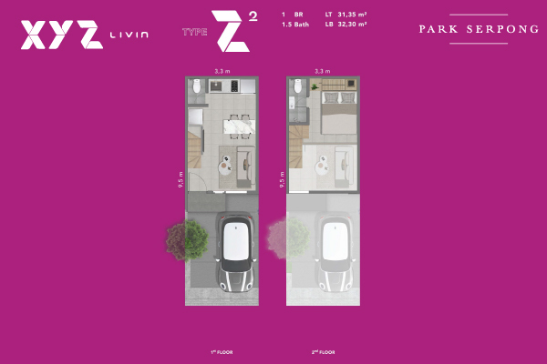 LT 31, 35 m² LB 32, 30 m² 1 Kamar Tidur 1,5 Kamar Mandi